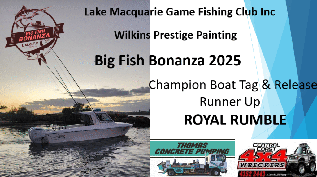 Lake Macquarie Game Fishing Club situated at the port of Swansea was formed in 1962, since that time membership has grown to the extent that is now the second largest club in NSW.